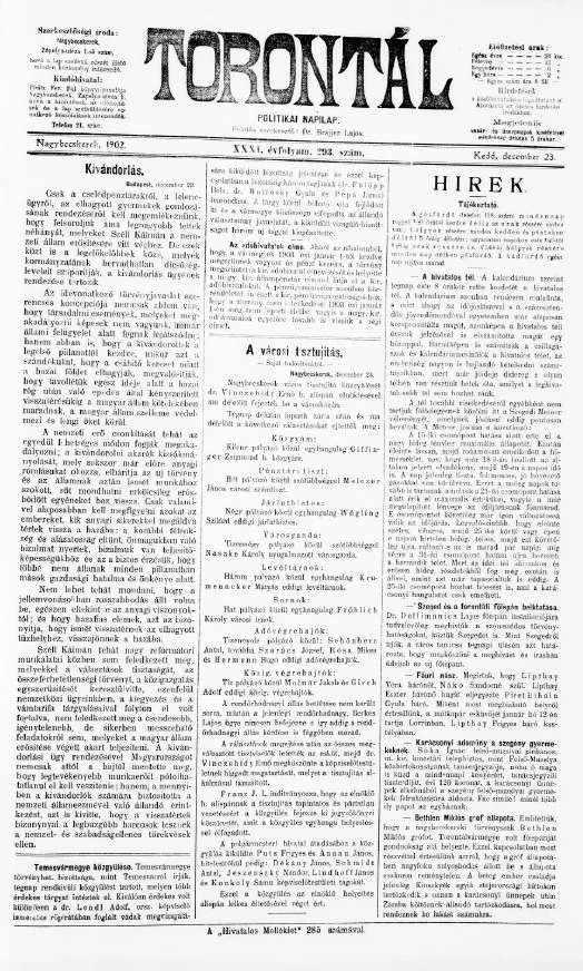 Torontál, 31. évf. 1902. december 23. 293. sz.