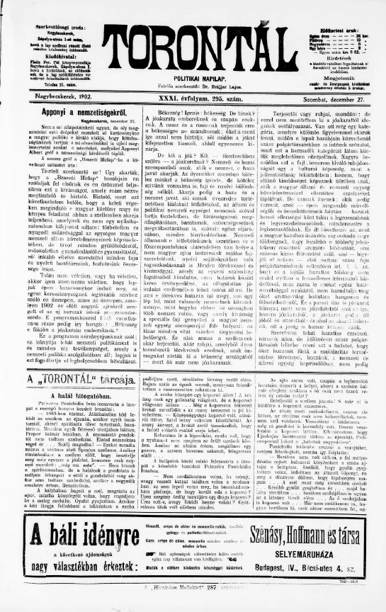 Torontál, 31. évf. 1902. december 27. 295. sz.