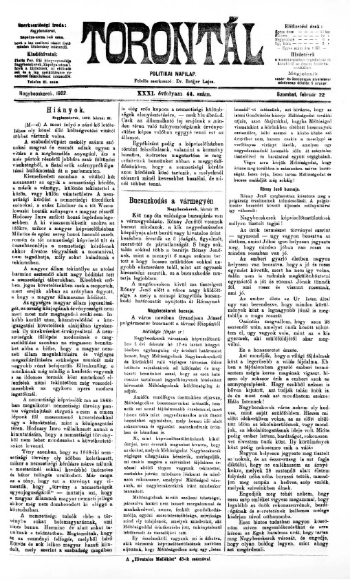 Torontál, 31. évf. 1902. február 22. 44. sz.