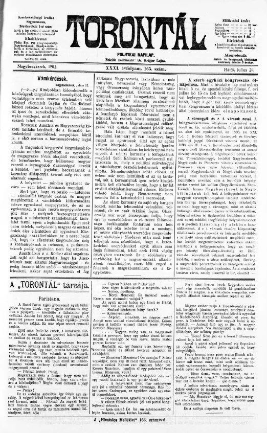 Torontál, 31. évf. 1902. július 21. 165. sz.