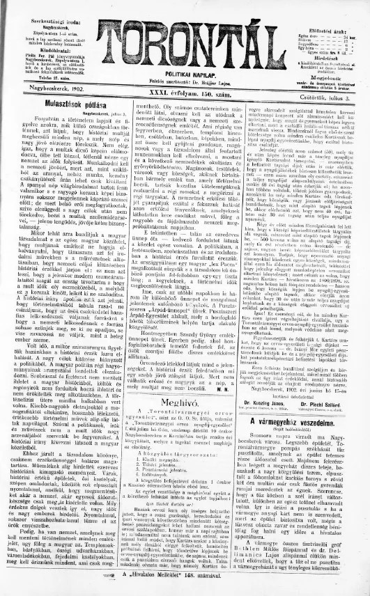 Torontál, 31. évf. 1902. július 3. 150. sz.