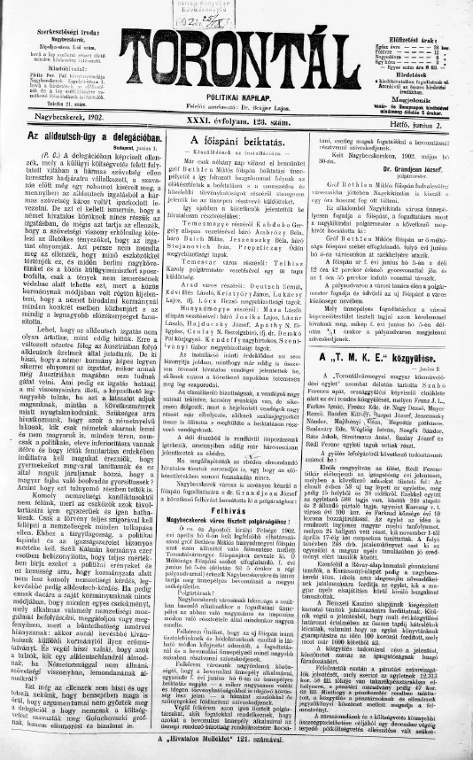 Torontál, 31. évf. 1902. június 2. 123. sz.