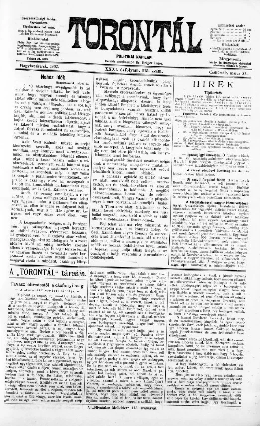 Torontál, 31. évf. 1902. május 22. 115. sz.