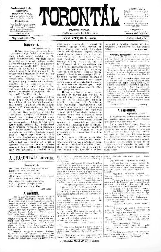 Torontál, 31. évf. 1902. március 14. 61. sz.