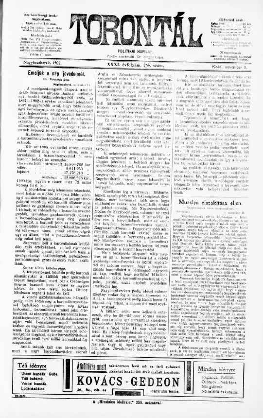 Torontál, 31. évf. 1902. november 11. 258. sz.