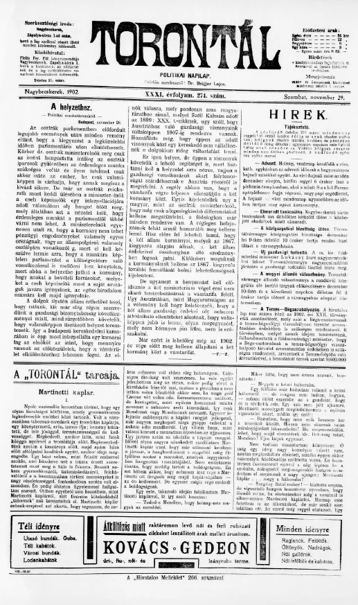 Torontál, 31. évf. 1902. november 29. 274. sz.