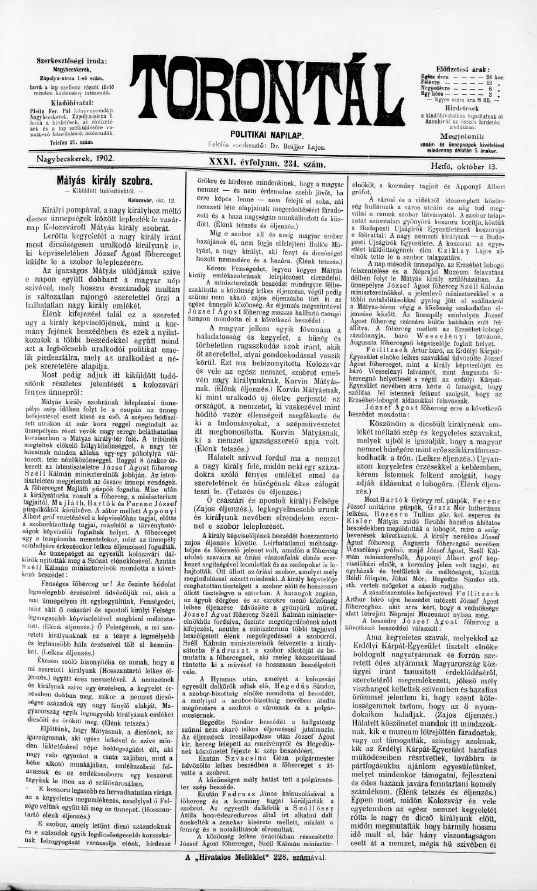 Torontál, 31. évf. 1902. október 13. 234. sz.