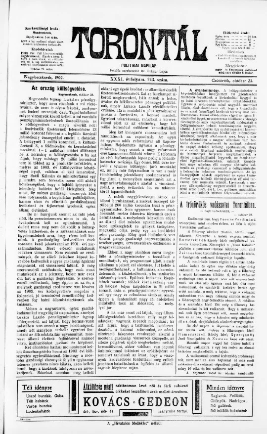 Torontál, 31. évf. 1902. október 23. 243. sz.