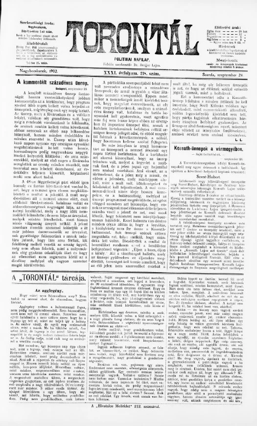 Torontál, 31. évf. 1902. szeptember 24. 218. sz.