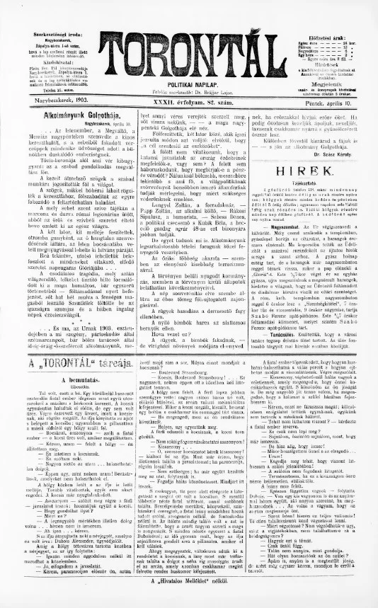 Torontál, 32. évf. 1903. április 10. 82. sz.