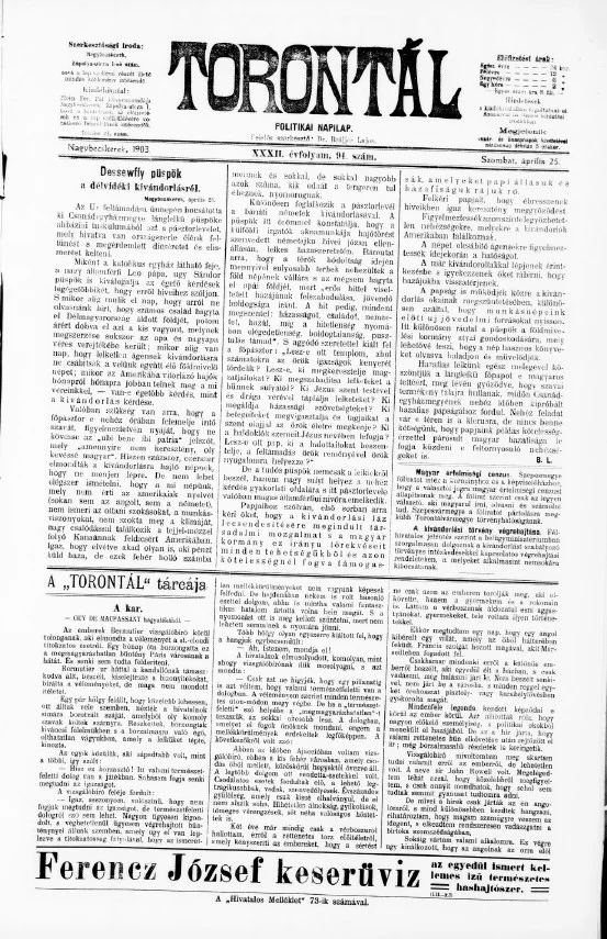 Torontál, 32. évf. 1903. április 25. 94. sz.