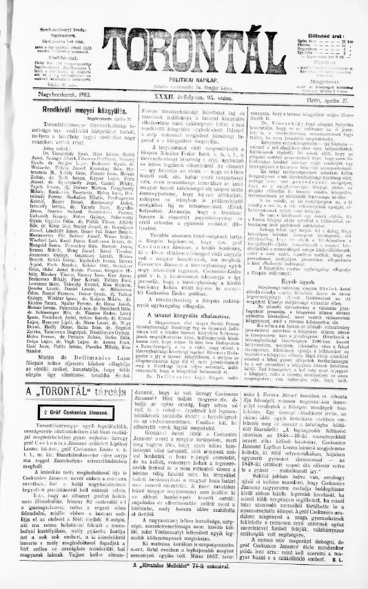 Torontál, 32. évf. 1903. április 27. 95. sz.