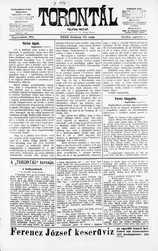 Torontál, 32. évf. 1903. augusztus 1. 173. sz.