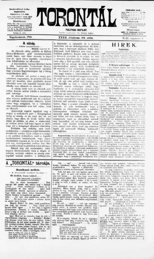 Torontál, 32. évf. 1903. augusztus 11. 181. sz.