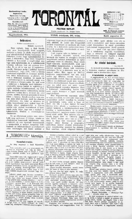 Torontál, 32. évf. 1903. augusztus 25. 191. sz.