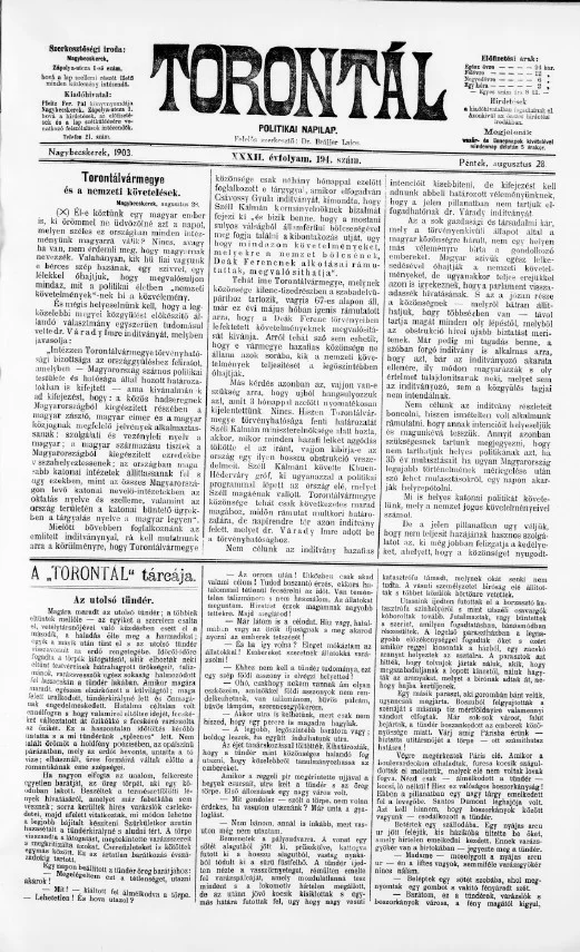 Torontál, 32. évf. 1903. augusztus 28. 194. sz.