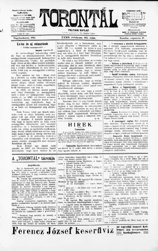 Torontál, 32. évf. 1903. augusztus 29. 195. sz.