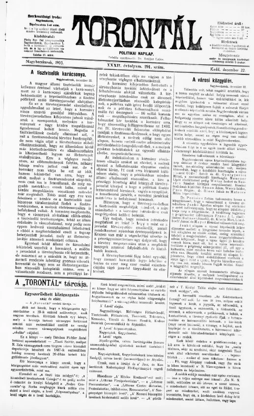 Torontál, 32. évf. 1903. december 22. 291. sz.