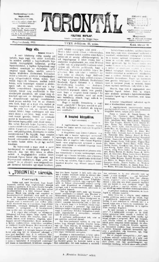 Torontál, 32. évf. 1903. február 10. 32. sz.