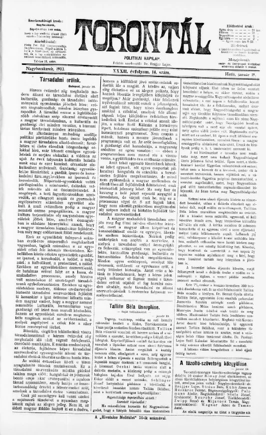 Torontál, 32. évf. 1903. január 19. 14. sz.