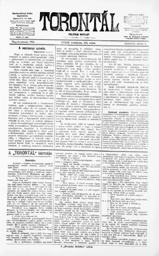 Torontál, 32. évf. 1903. június 4. 125. sz.