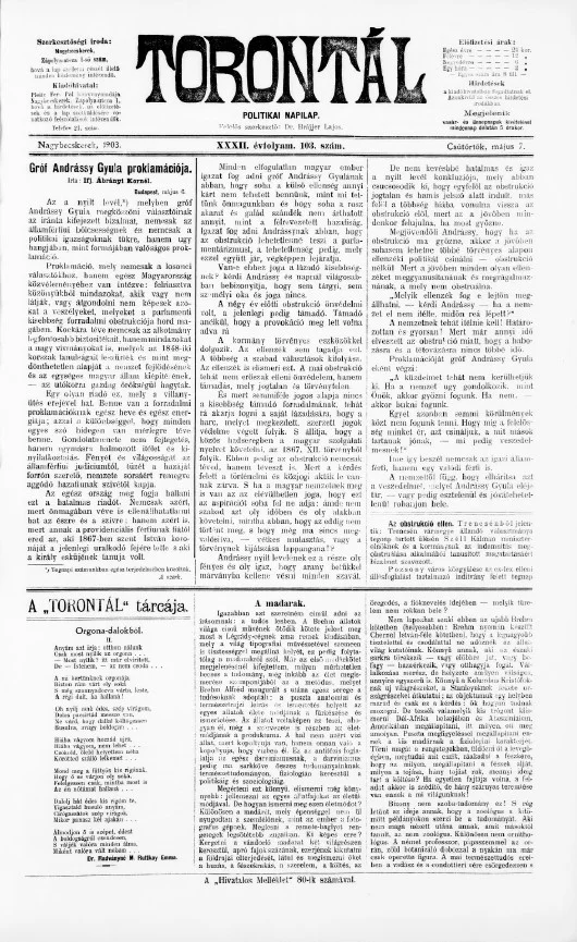 Torontál, 32. évf. 1903. május 7. 103. sz.