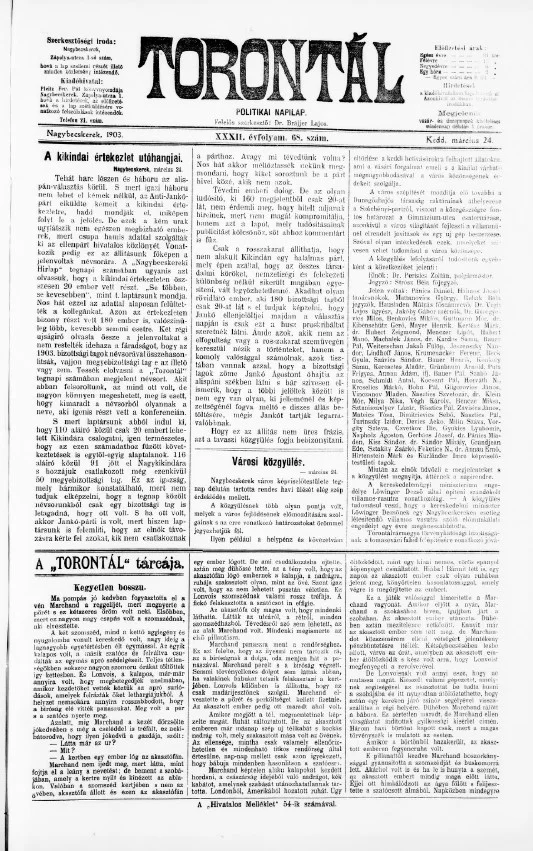 Torontál, 32. évf. 1903. március 24. 68. sz.