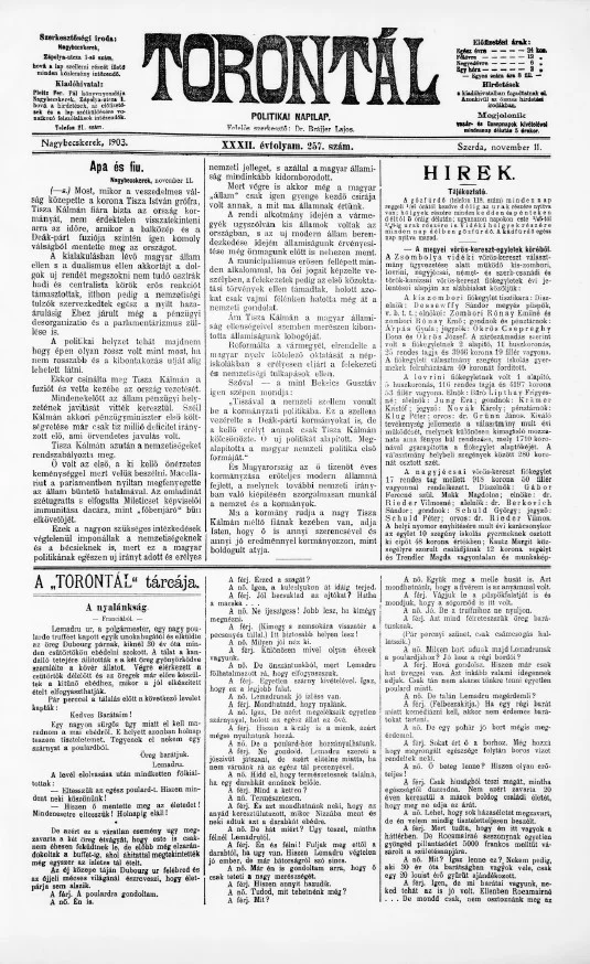 Torontál, 32. évf. 1903. november 11. 257. sz.