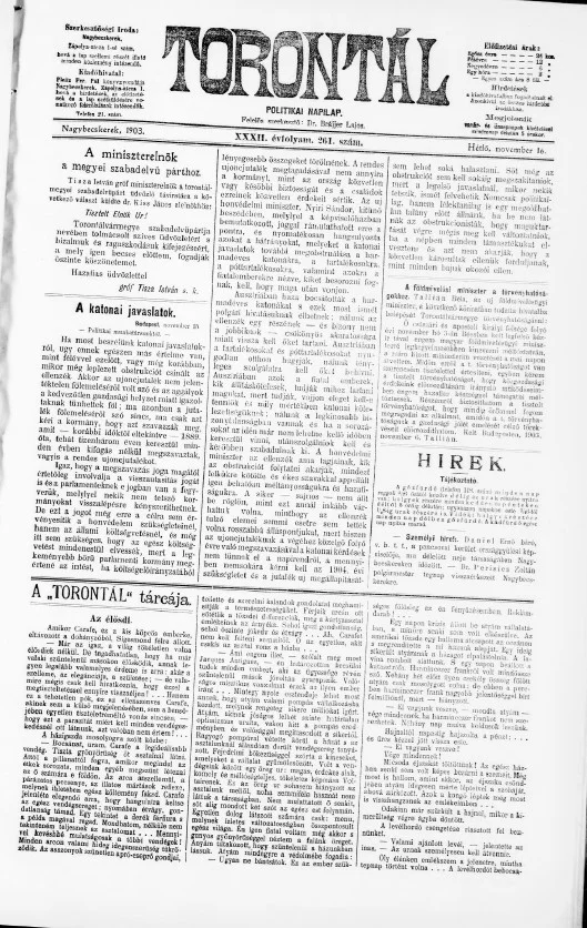 Torontál, 32. évf. 1903. november 16. 261. sz.