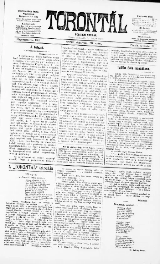 Torontál, 32. évf. 1903. november 27. 271. sz.