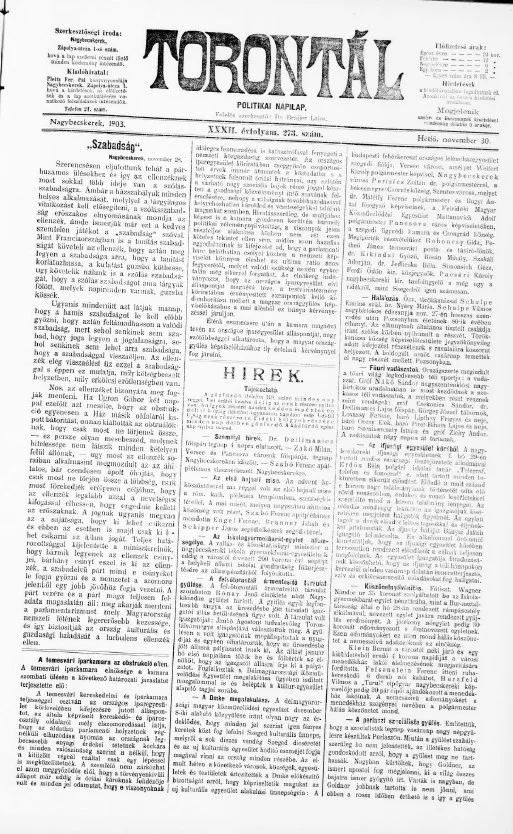 Torontál, 32. évf. 1903. november 30. 273. sz.