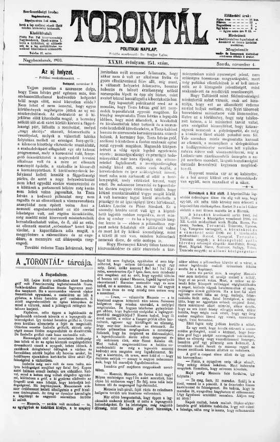 Torontál, 32. évf. 1903. november 4. 251. sz.