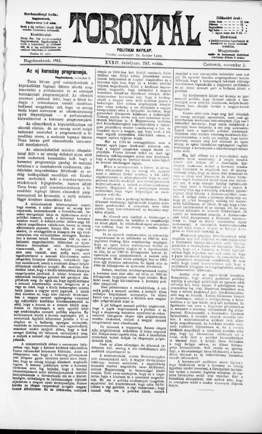 Torontál, 32. évf. 1903. november 5. 252. sz.