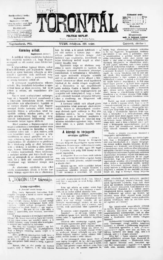 Torontál, 32. évf. 1903. október 1. 222. sz.