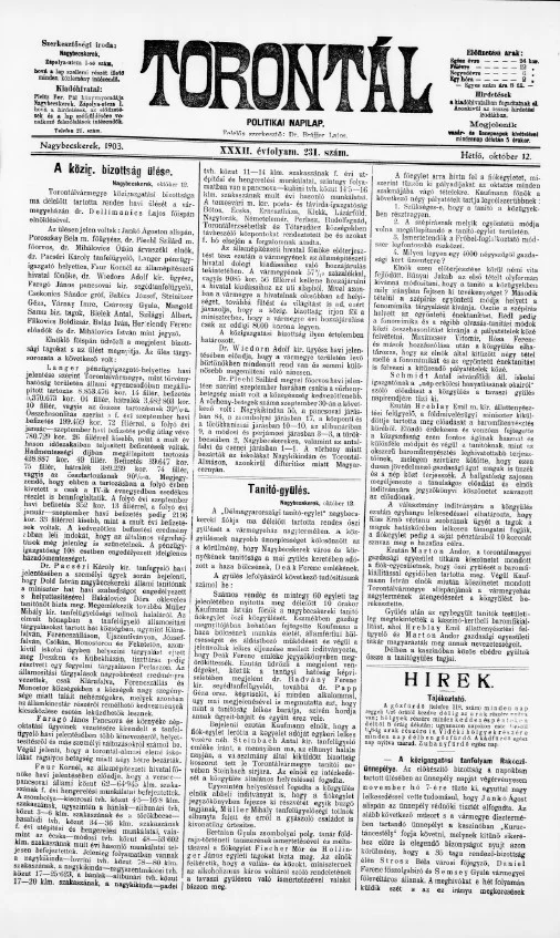 Torontál, 32. évf. 1903. október 12. 231. sz.