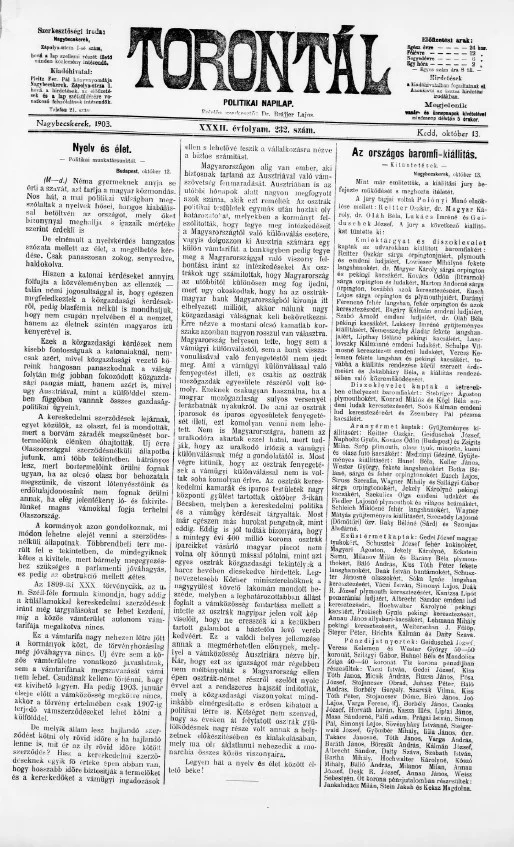 Torontál, 32. évf. 1903. október 13. 232. sz.