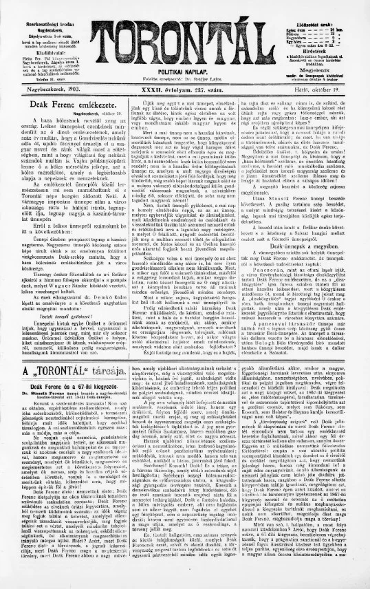 Torontál, 32. évf. 1903. október 19. 237. sz.