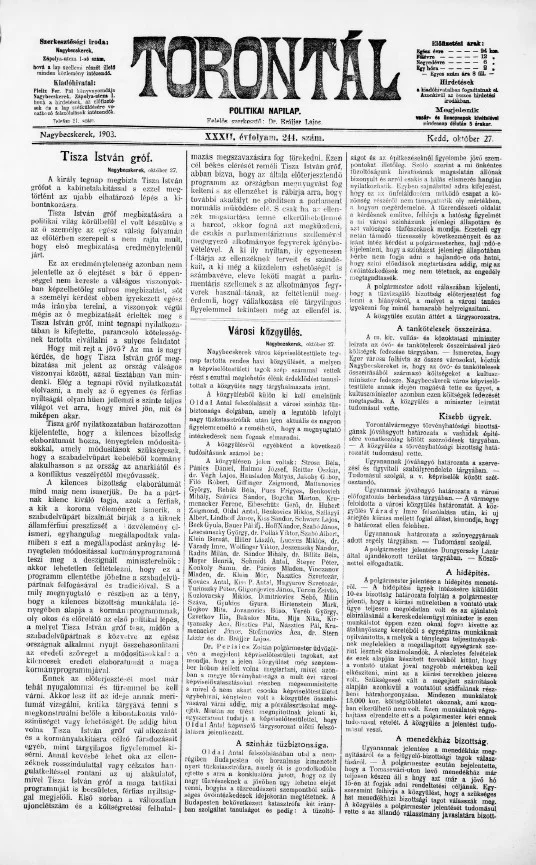 Torontál, 32. évf. 1903. október 27. 244. sz.
