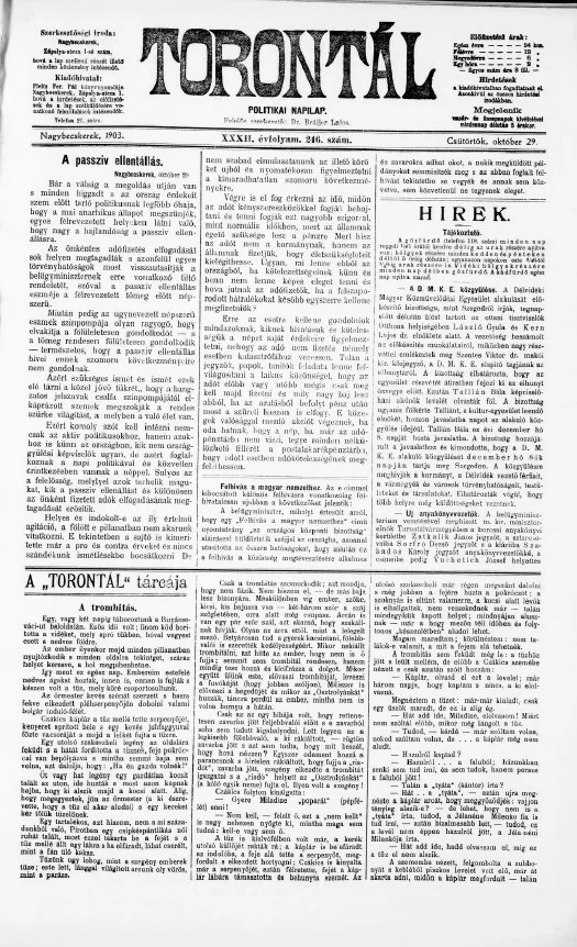 Torontál, 32. évf. 1903. október 29. 246. sz.