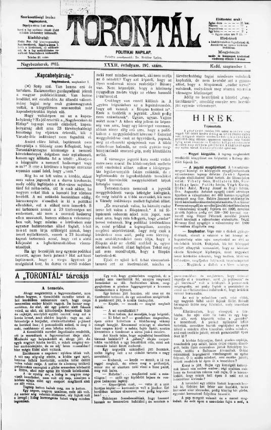 Torontál, 32. évf. 1903. szeptember 1. 197. sz.