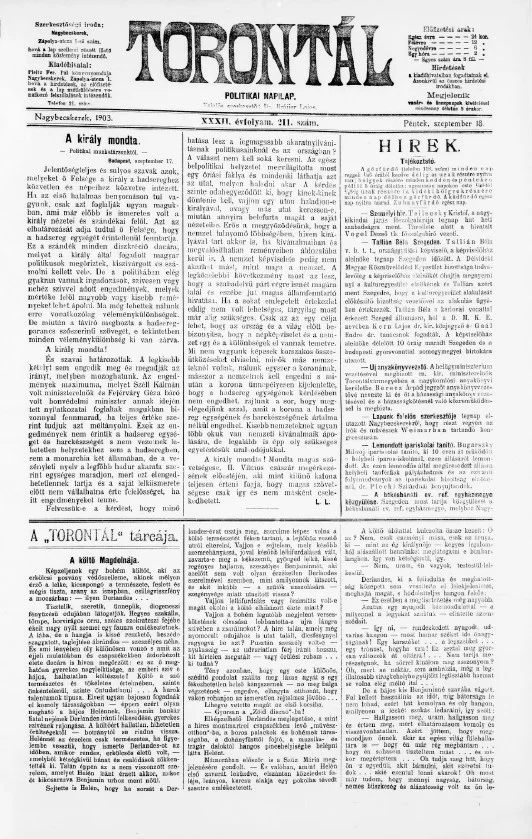 Torontál, 32. évf. 1903. szeptember 18. 211. sz.