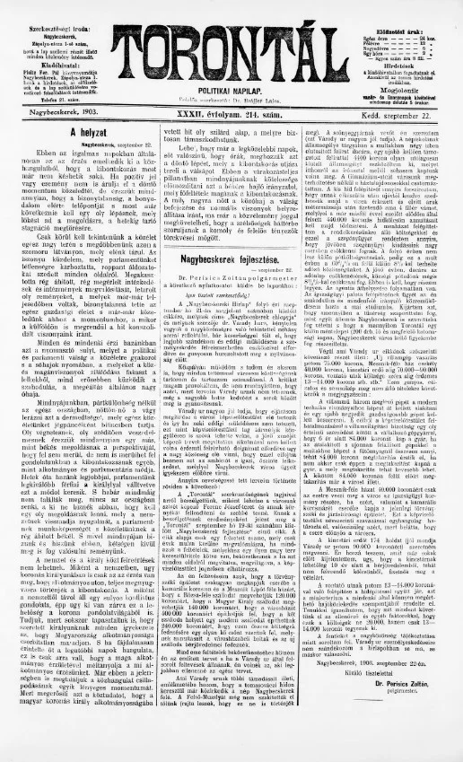 Torontál, 32. évf. 1903. szeptember 22. 214. sz.