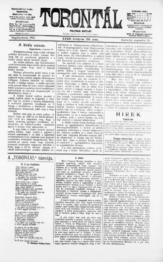 Torontál, 32. évf. 1903. szeptember 24. 216. sz.