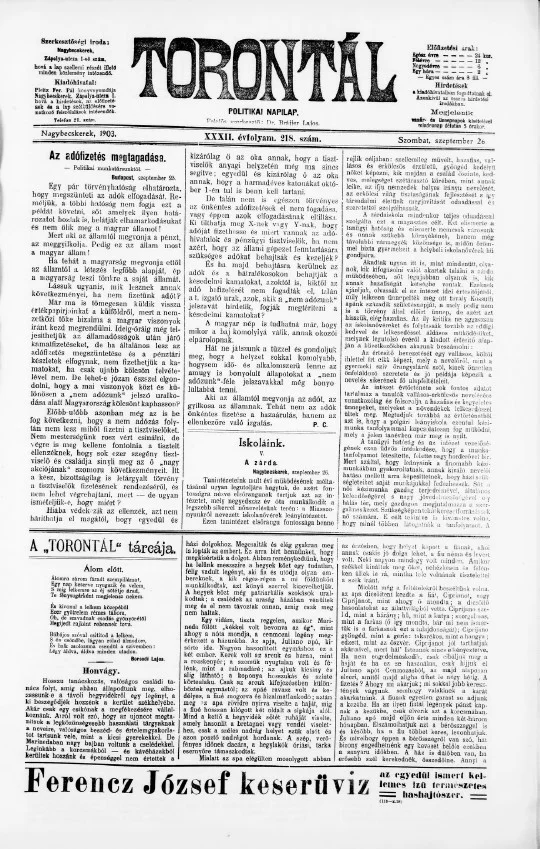 Torontál, 32. évf. 1903. szeptember 26. 218. sz.