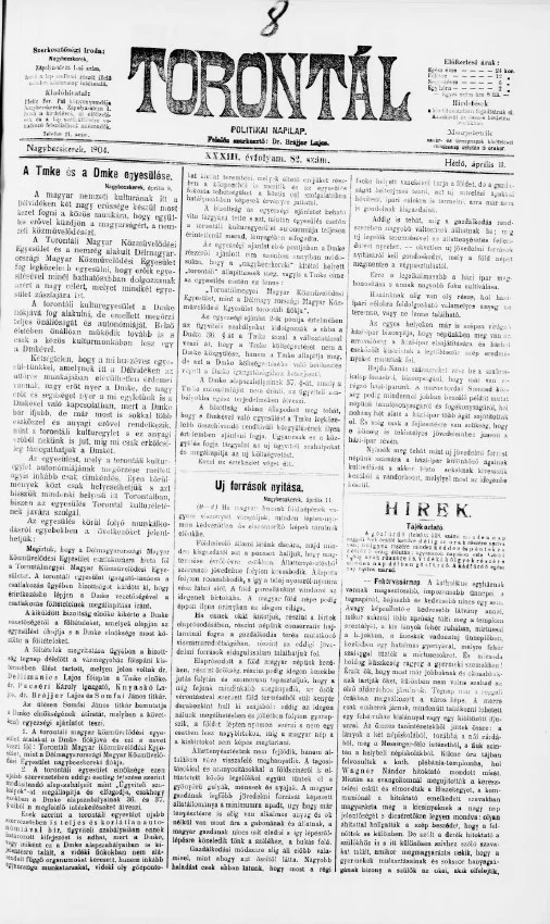 Torontál, 33. évf. 1904. április 11. 82. sz.