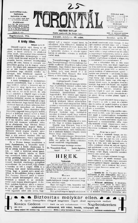 Torontál, 33. évf. 1904. április 30. 99. sz.