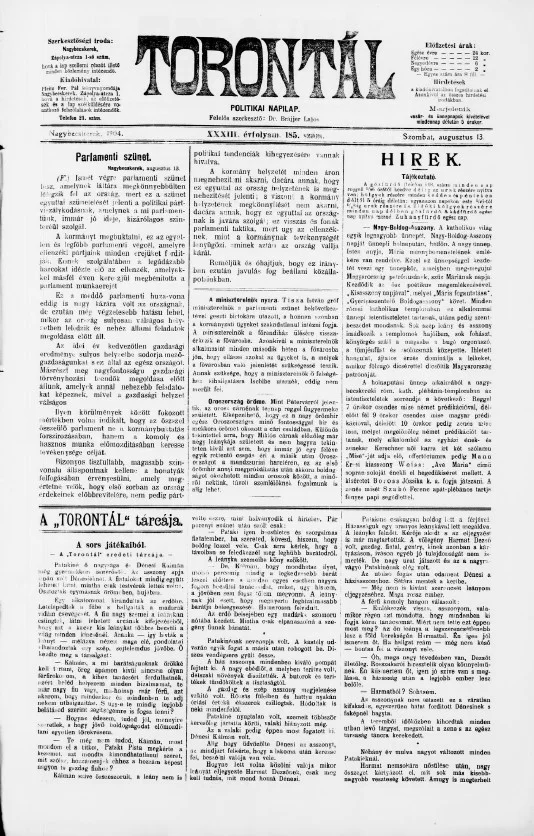Torontál, 33. évf. 1904. augusztus 13. 185. sz.