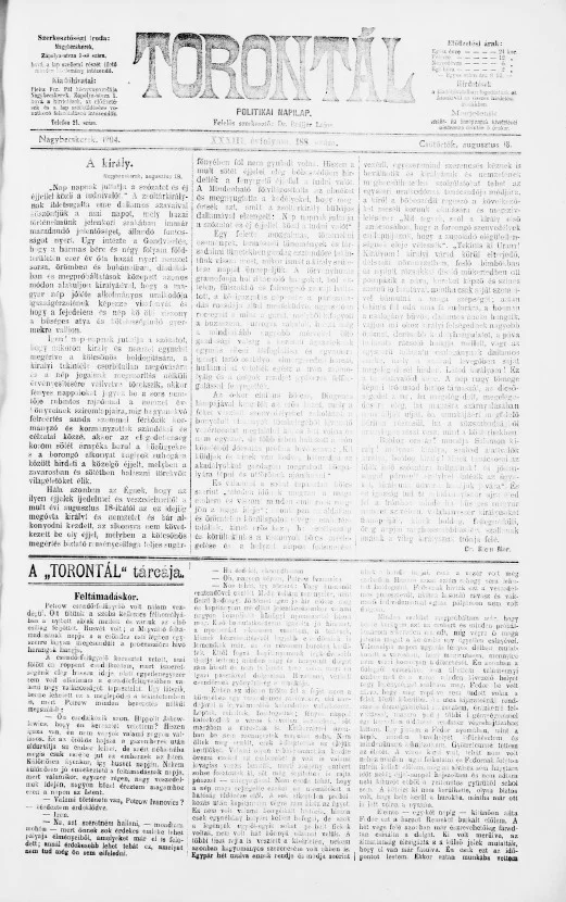 Torontál, 33. évf. 1904. augusztus 18. 188. sz.