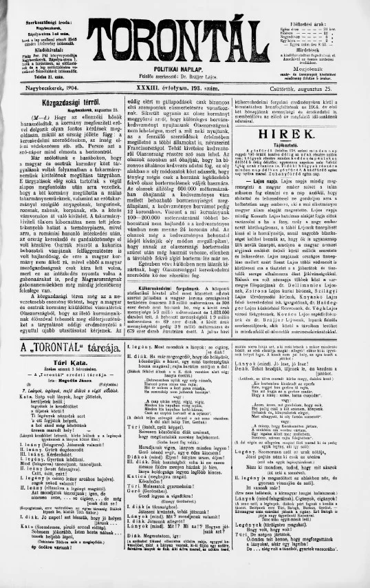 Torontál, 33. évf. 1904. augusztus 25. 193. sz.
