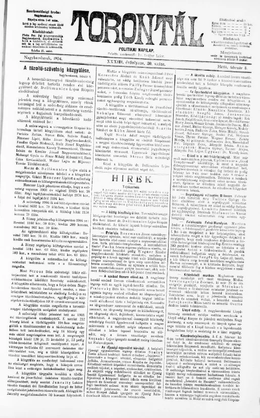 Torontál, 33. évf. 1904. február 8. 30. sz.